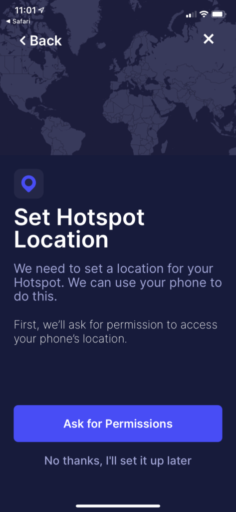 Once back to Helium App, it's time to set a location for the Hotspot.