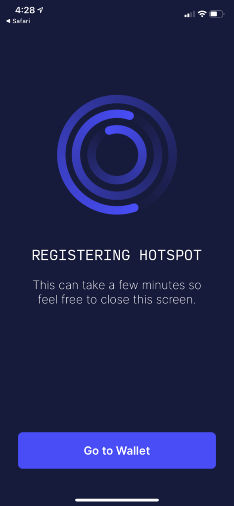 Once done, your Hotspot will go into registration. It can take up to 15 min here.