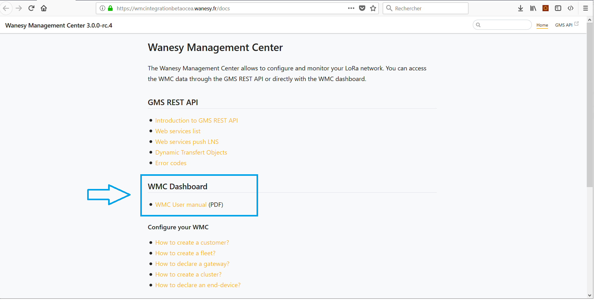 In the User Manual, you will find the QuickStart section with the following information : How to install or update gateway packages for the WMC, how to check its configuration, how to declare a gateway or a end-device from the WMC dashboard and how to check that it correctly works.