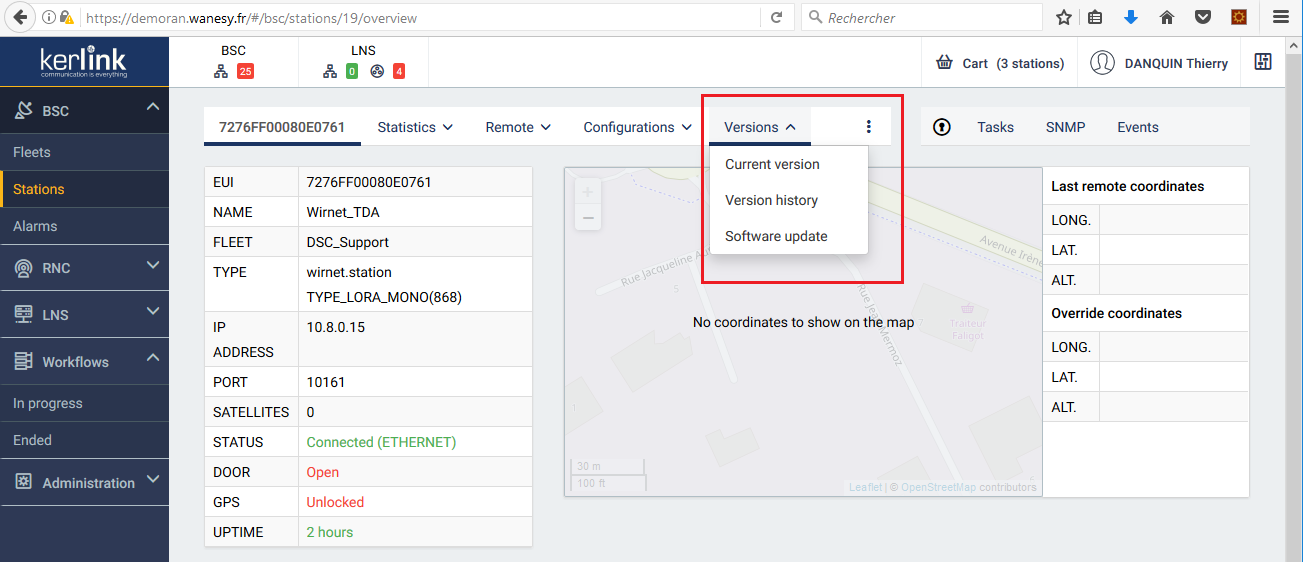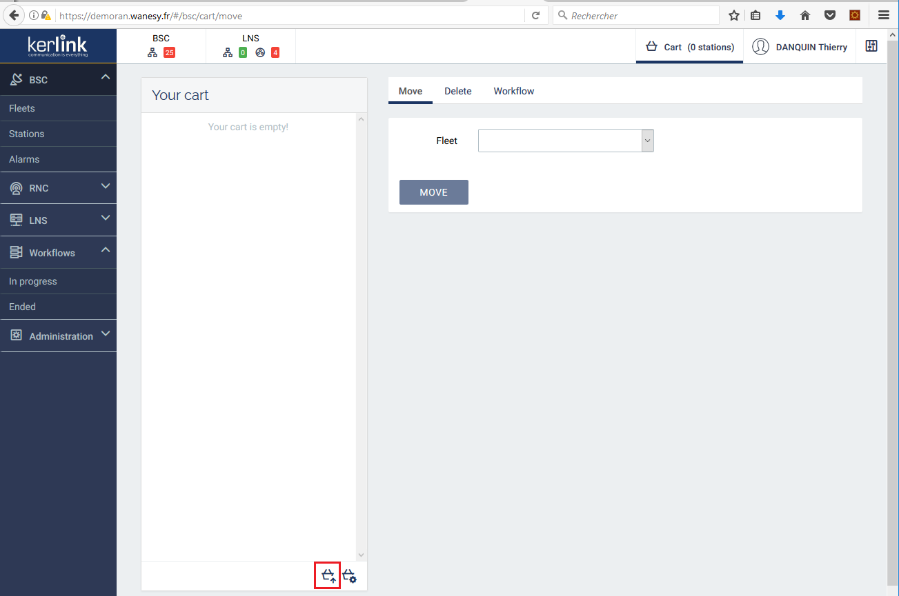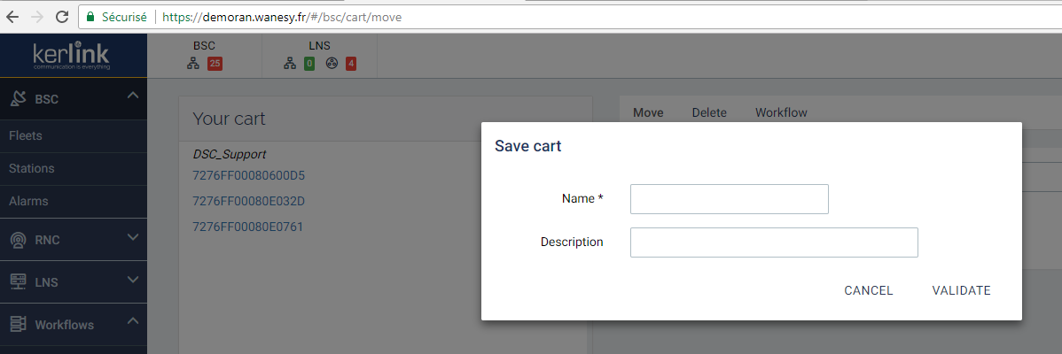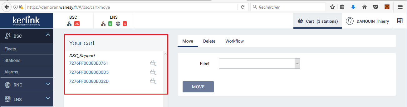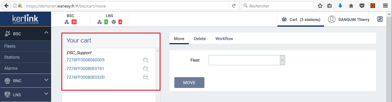 In BSCC menu, click on “Stations” and select the stations you want to add in your cart by clicking on the “Cart button” at the left side of the station's EUI: