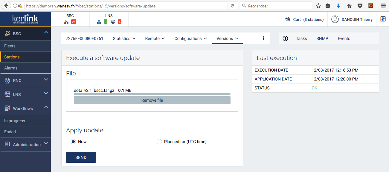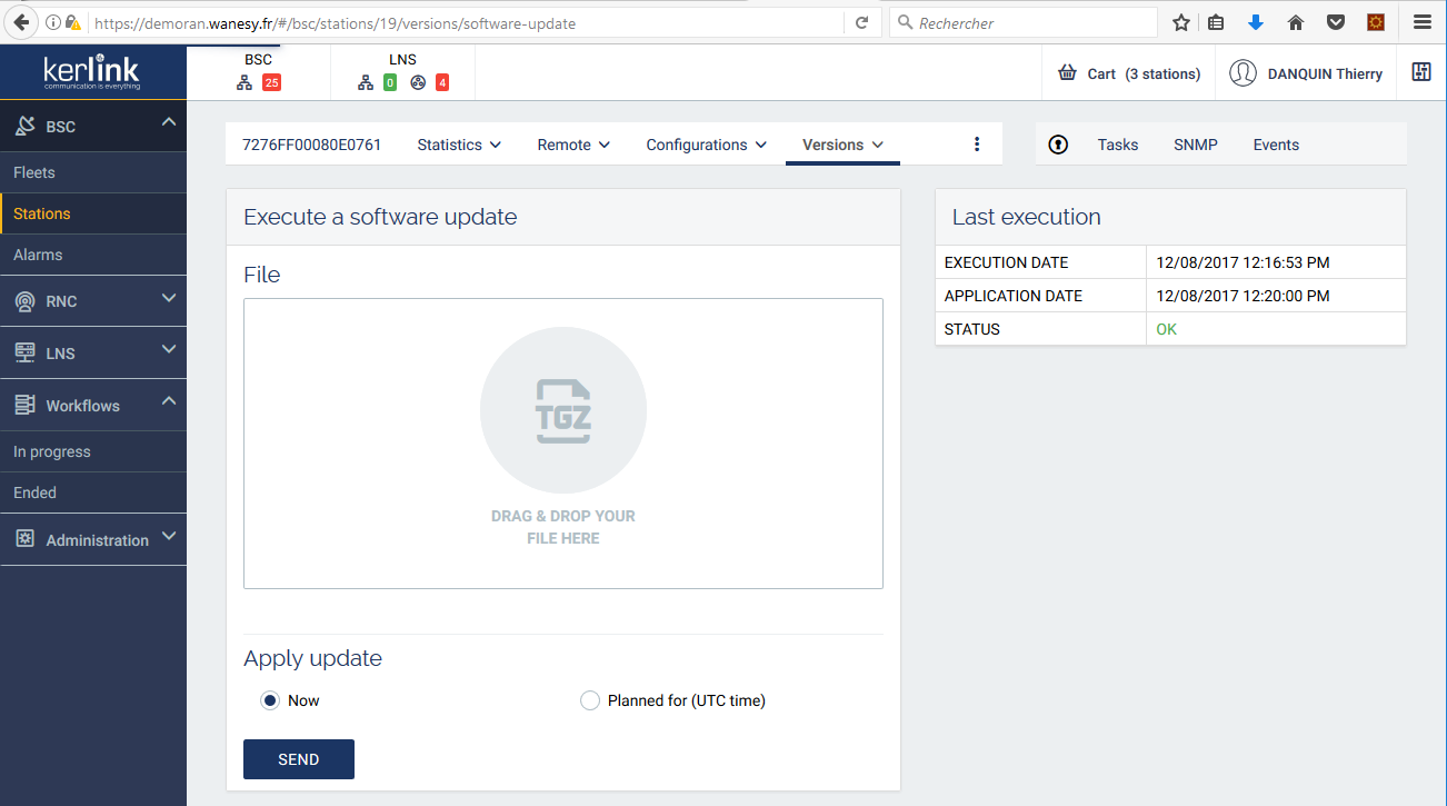 This section lists all the tasks that were run on the station. When clicking on a task, you can see all its messages and SNMP logs.
