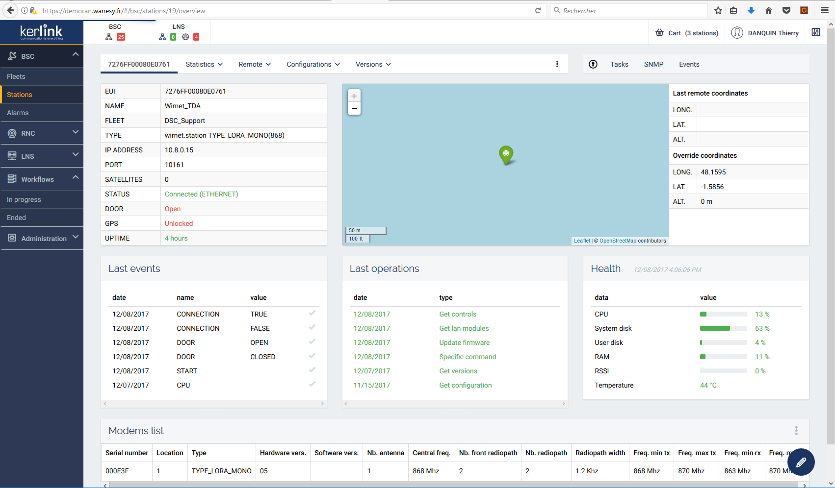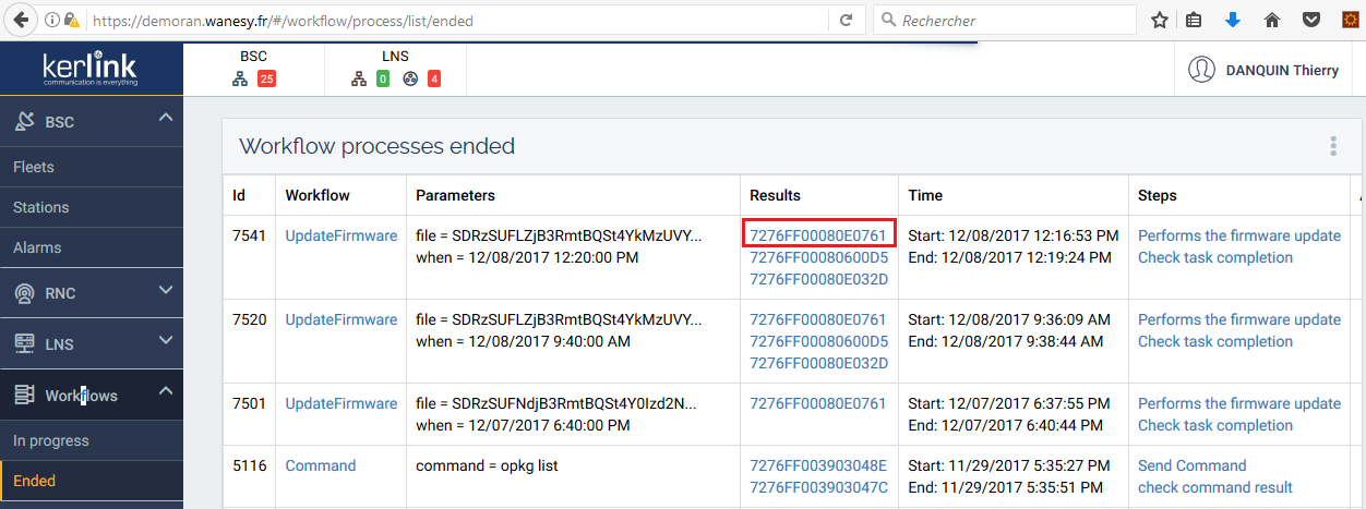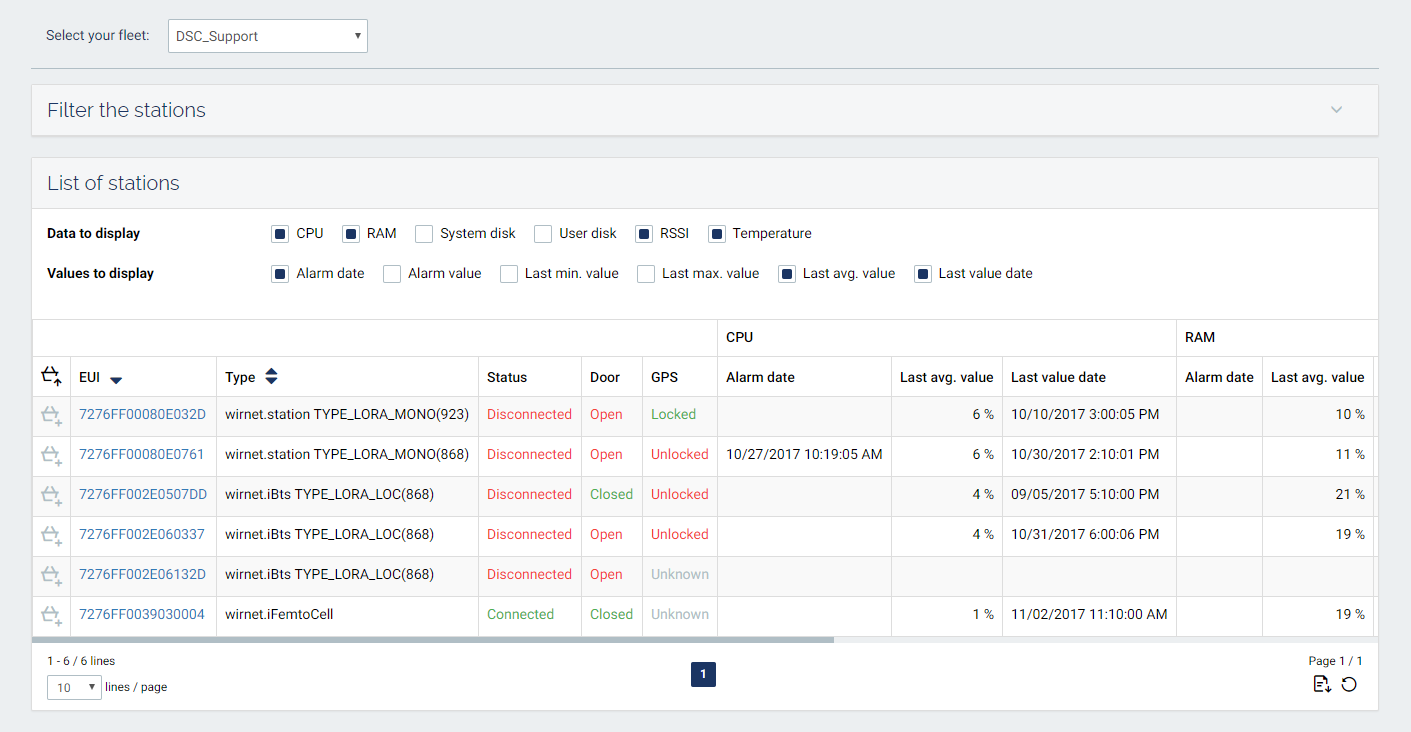 The operation result can be viewed by selecting the EUI of your station in the list: