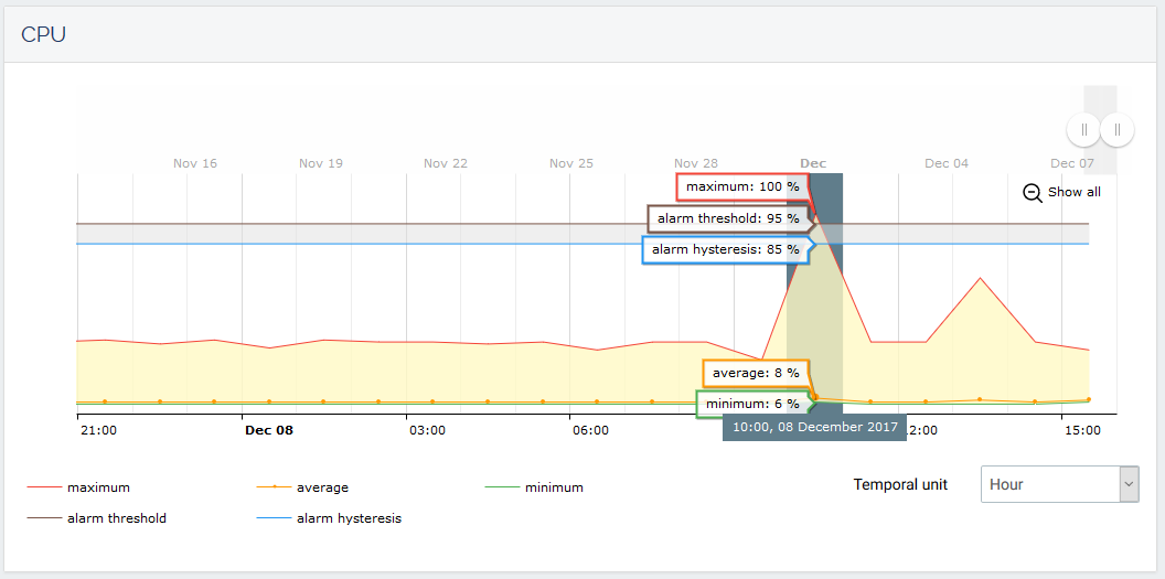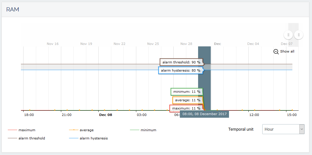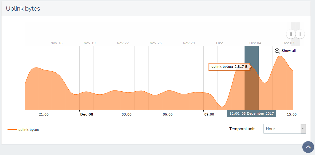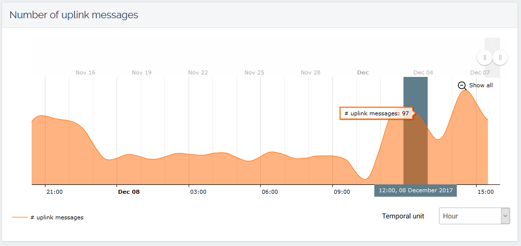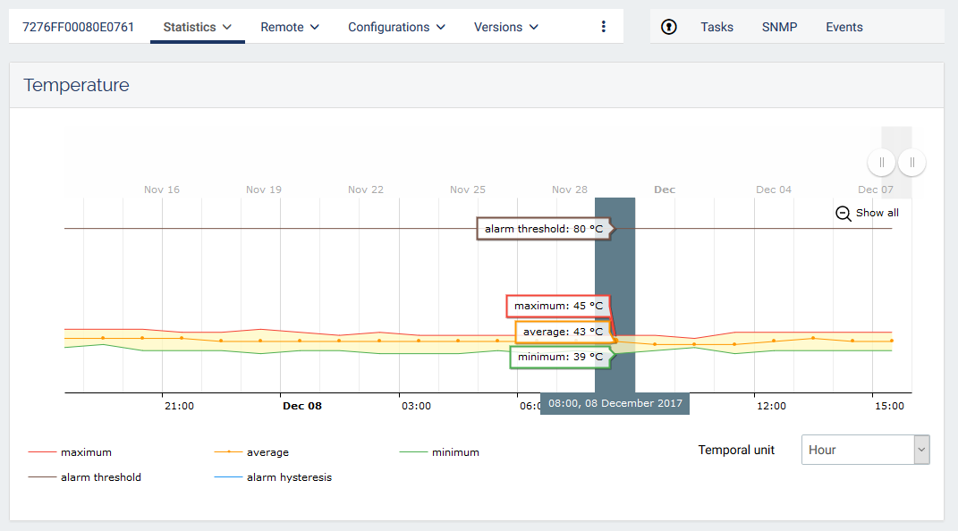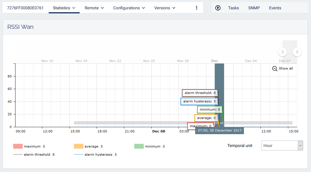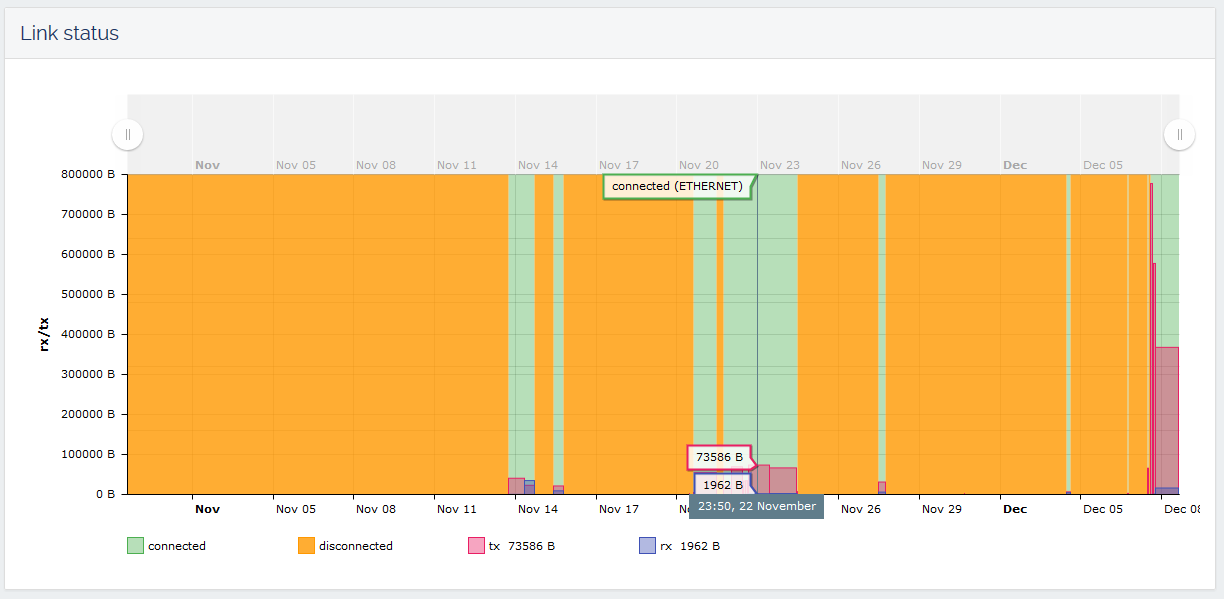 By selecting the Statictics menu option, you can get a detailled and historical view of your gateway: