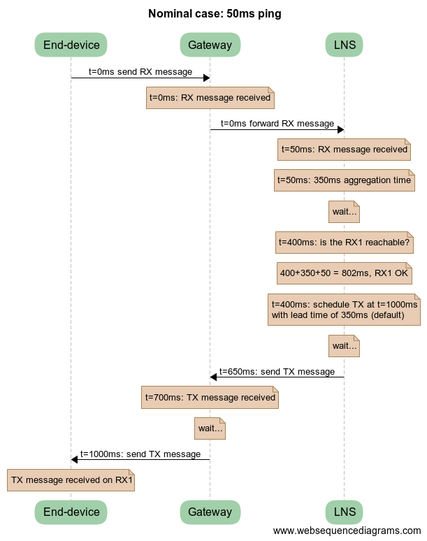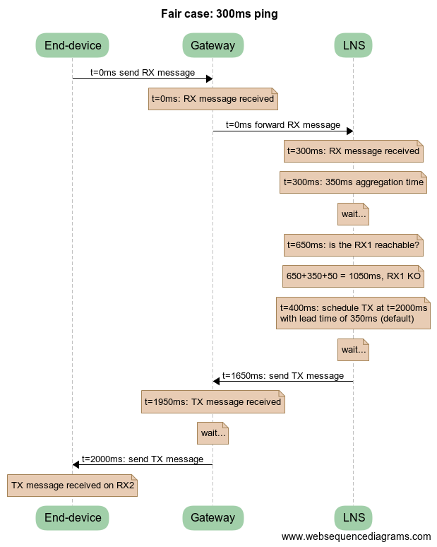 350ms (configured).196ms (actual).350ms (configured).212ms (actual).10:00:00.000 by gateway (actual T0, but not the value computed by LNS).10:00:00.196 by LNS (now).Computation: