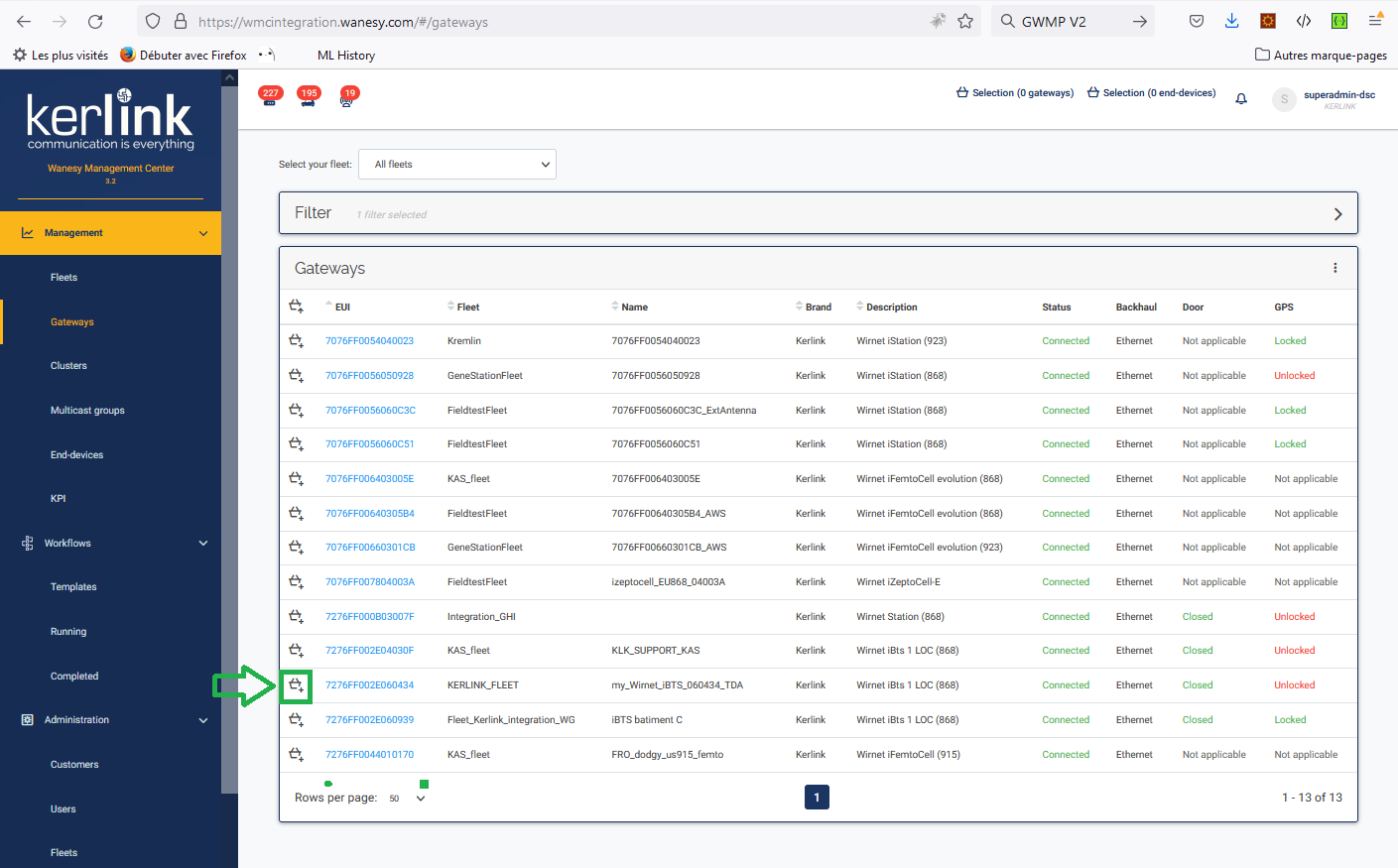 Select all the gateways you want to enable the Message Buffering feature. Care to select the same type of gateways (iSeries gateways or Wirnet Stations).