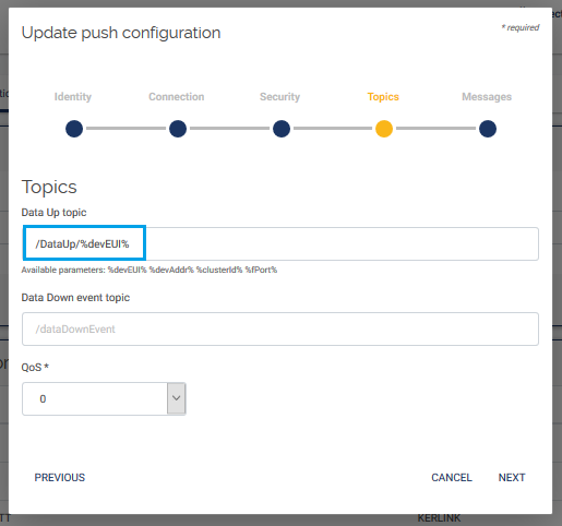 The MQTT client can subscribe to a particular cluster to get messages from all devices that belong to this cluster: