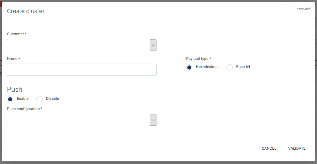 Your end-devices can be grouped into clusters. You can define as many clusters as you want. A cluster can group all the end-devices that belong to a customer or group all the end-devices that share the same area/country/region.