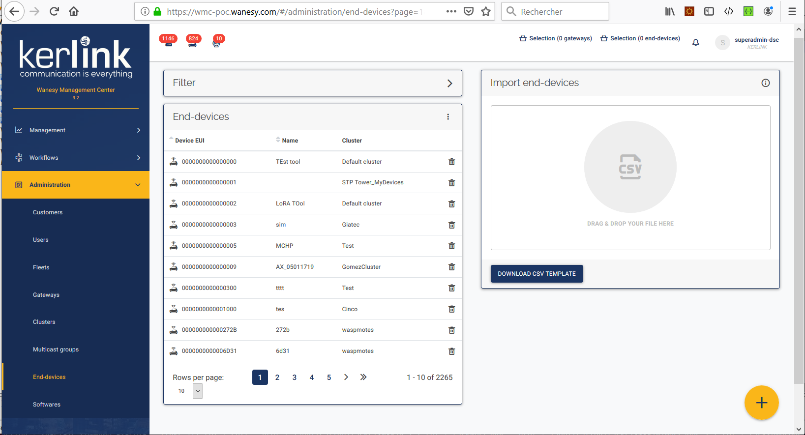 Select the “End-devices” option from the Administration menu: