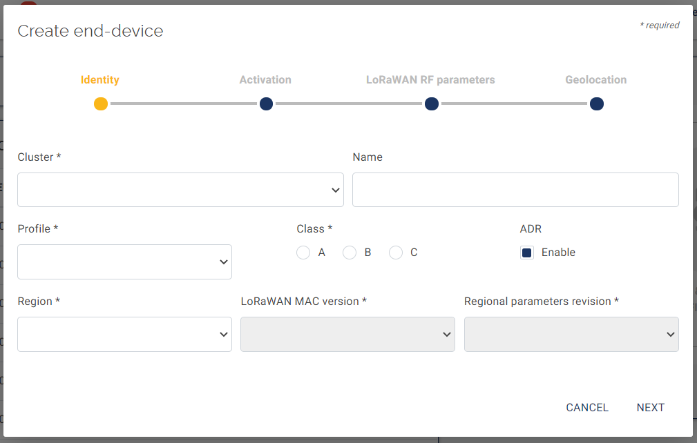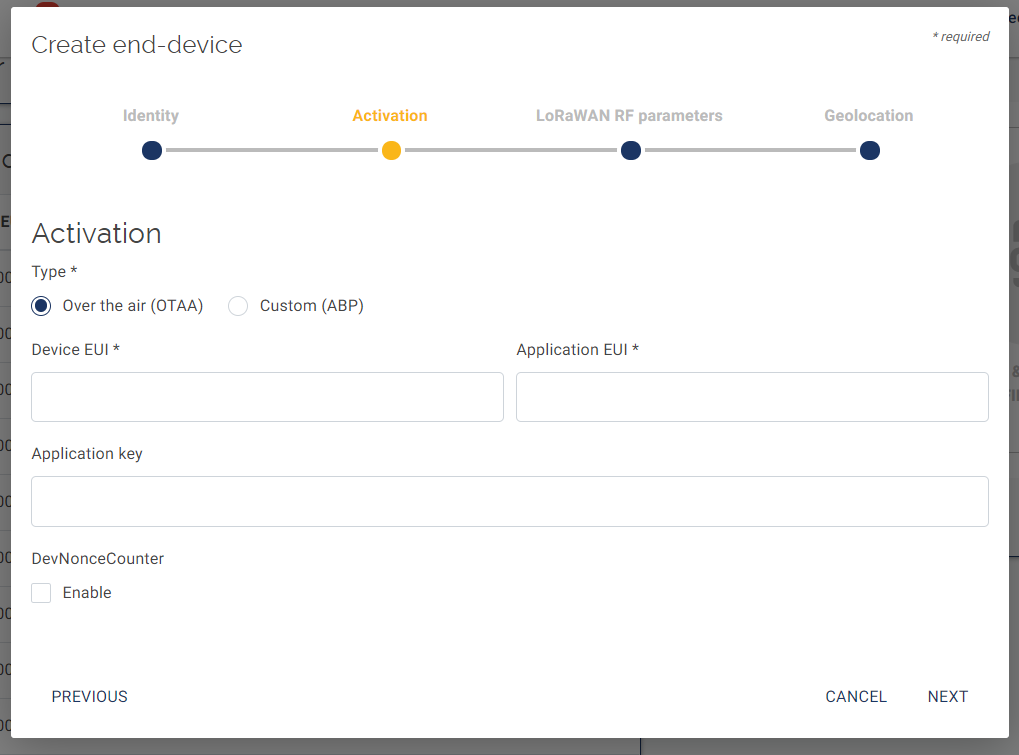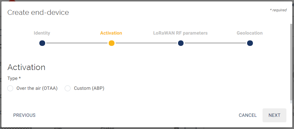 Then select the type of activation for your end-device: