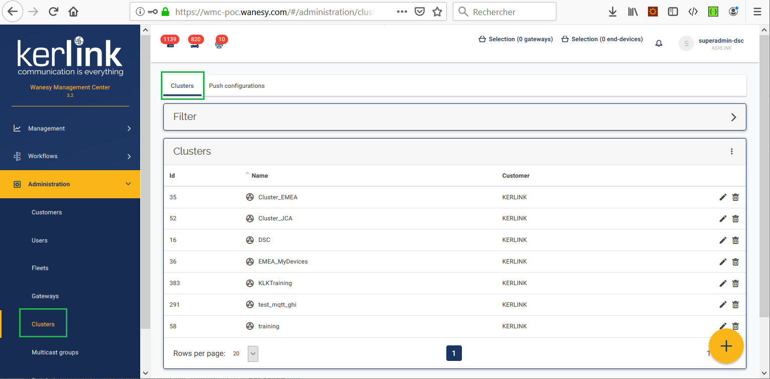 Once gateway embedded software has been installed, you have to configure the WMC: create your customers, create your fleets, declare your gateways, create your clusters and declare your end-devices.