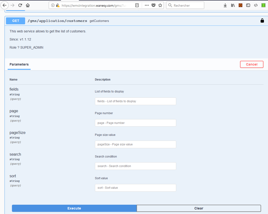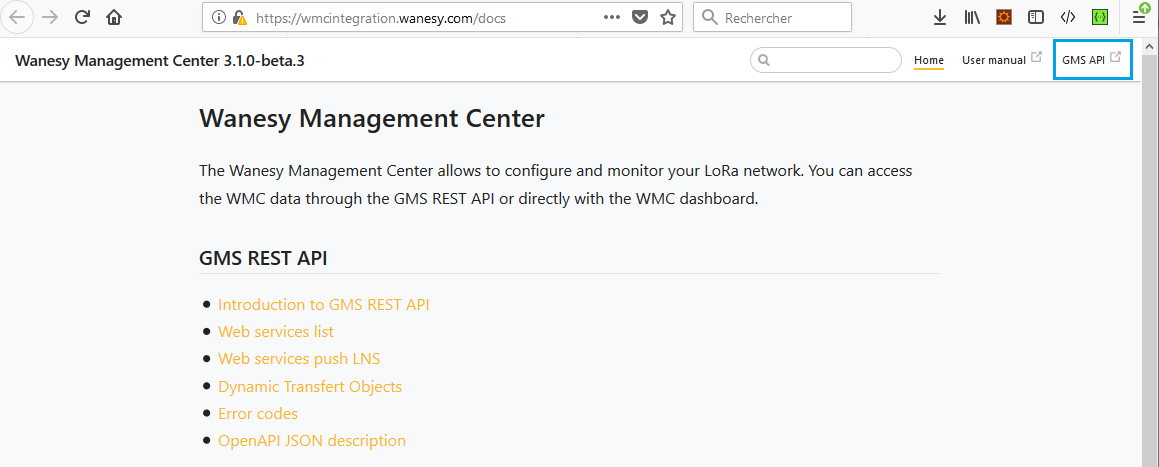 To use Swaggerui, simply click on the “Swaggerui” item displayed in the upper middle of the page: