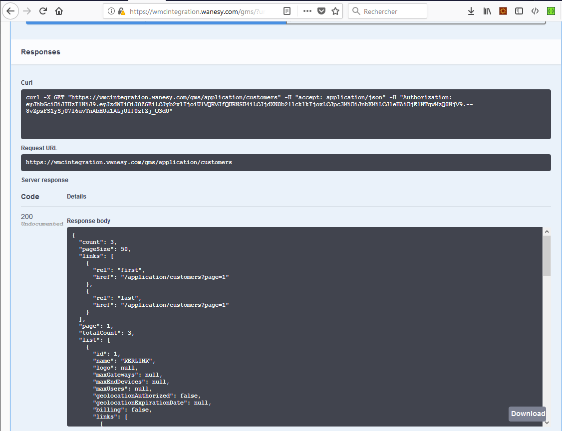 For this example, 3 customers are returned by the request.
