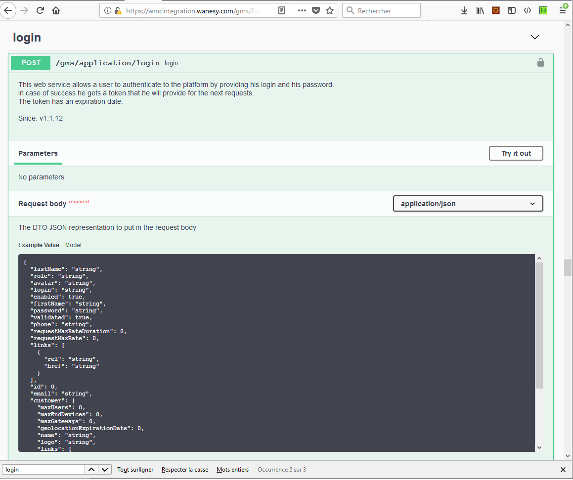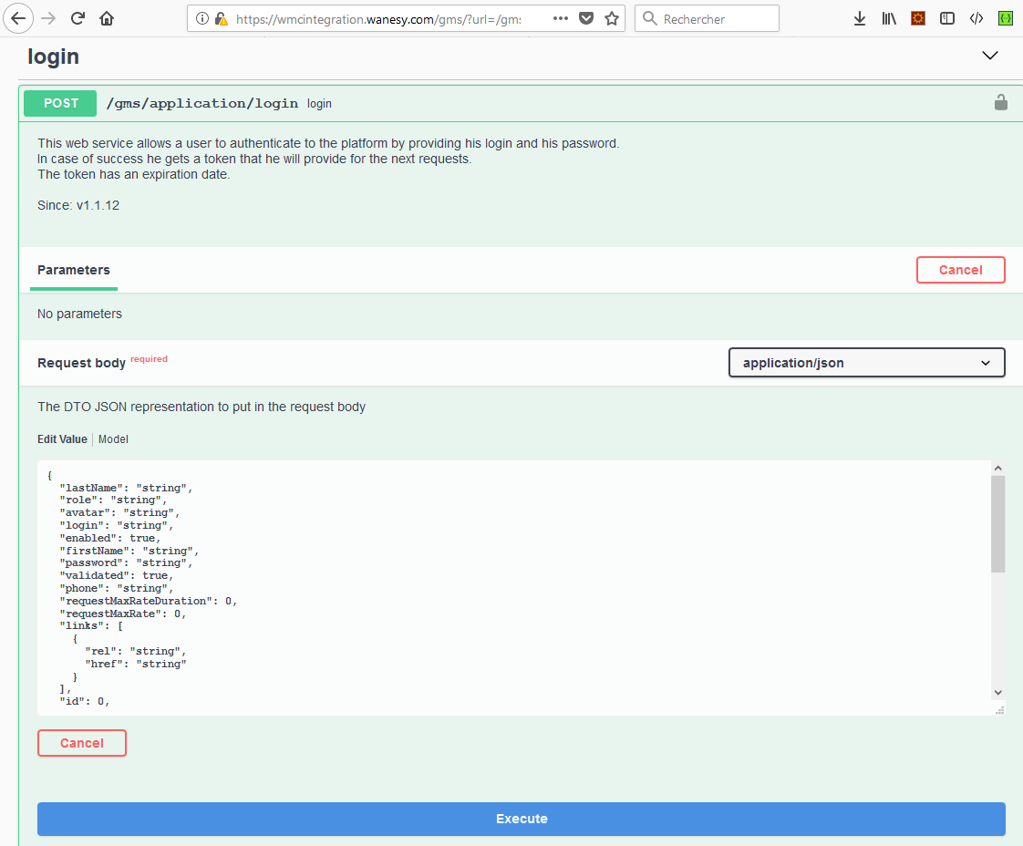 Enter your credentials (WMC dashboard credentials) by filling the “login” and “password” fields: