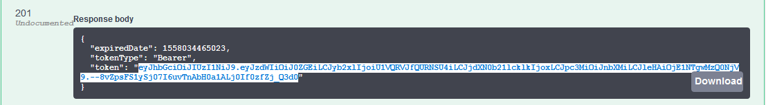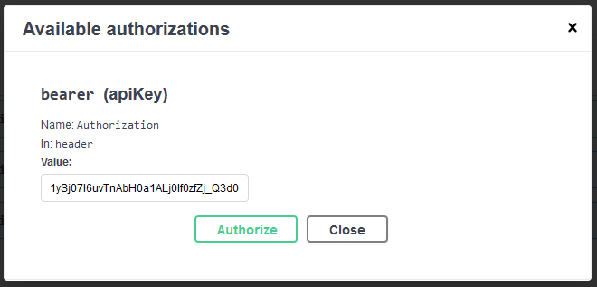Click on the “Authorize” button at the upper right corner of the page and paste the value of the token: