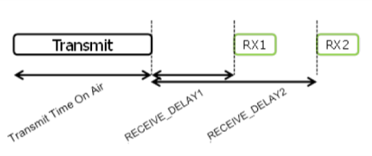 “Following each uplink transmission the end-device opens two short receive windows. The receive window start times are defined using the end of the transmission as a reference.”