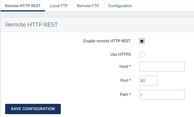 Its configuration is available in the Remote HTTP REST tab under the Services menu.