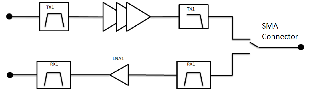 The following block diagram details the architecture of the radio front-end: