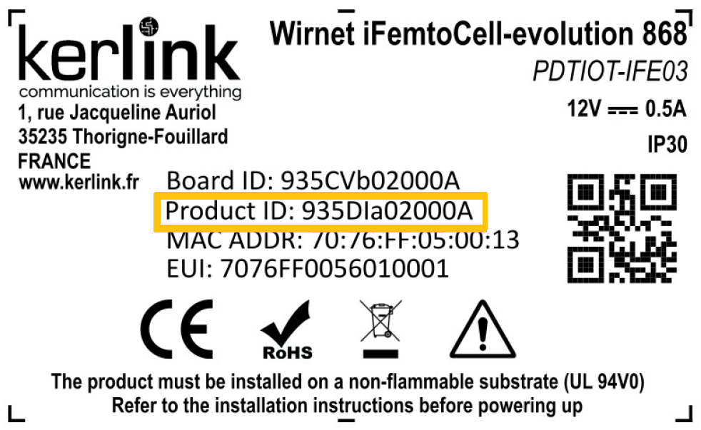 Each Wirnet iFemtoCell-evolution has one global serial number “Product ID”, one “Board ID” and one “Packaging ID”.