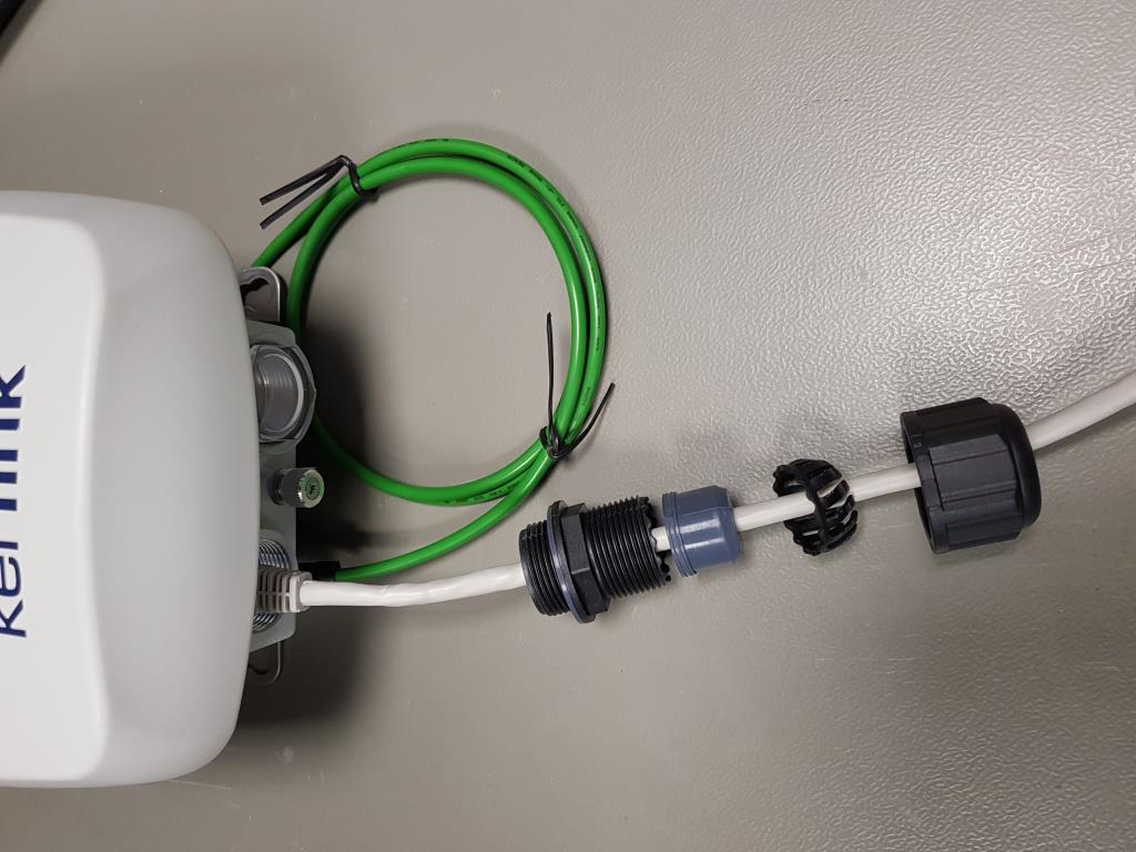 Connect the PoE output connector to the Ethernet port on the bottom side of the gateway.