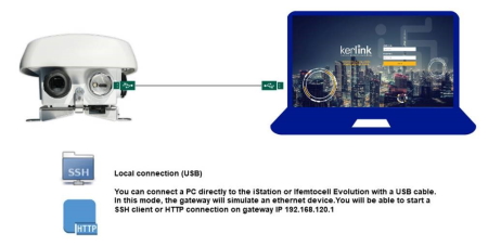 You can connect a PC directly to the iStation with a USB cable. In this mode, the gateway will simulate an ethernet device.