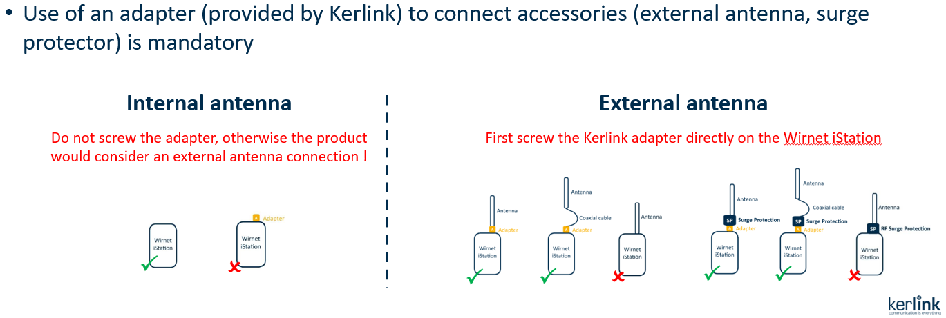 If you want to connect accessories (like external antenna or surge protector) and ensure the full performance and flexibility of your product, we thus strongly recommend the use of an adapter for the connector.