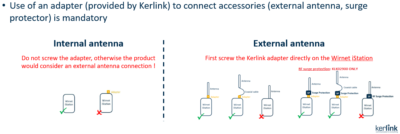 If you want to connect accessories (like external antenna or surge protector) and ensure the full performance and flexibility of your product, we thus strongly recommend the use of an adapter for the connector.