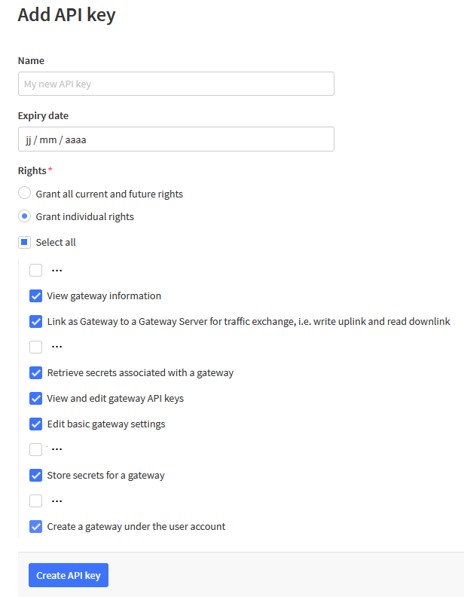 To automatically connect Kerlink Gateways to TTI LNS, you have to delegate some rights to Kerlink thanks to an “API key”. Please follow those steps: