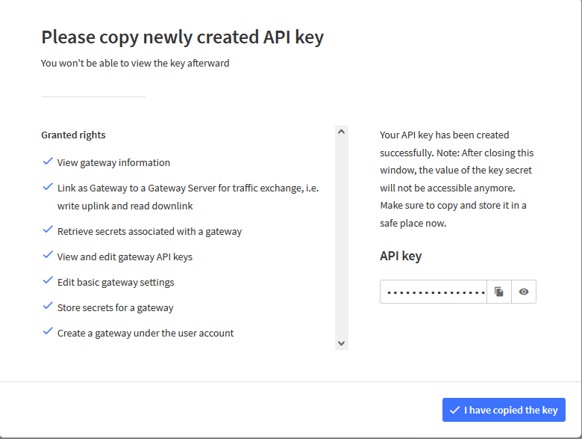 Step 4 - Create the API key with rights limited to GW creation and edition