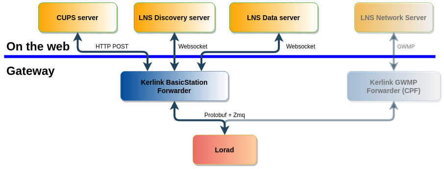 Once installed and configured, it is able to connect to a “LNS” or a “CUPS” server and handle all associated services (Radio configuration, Forward uplink packets, schedule downlink packets, etc.).